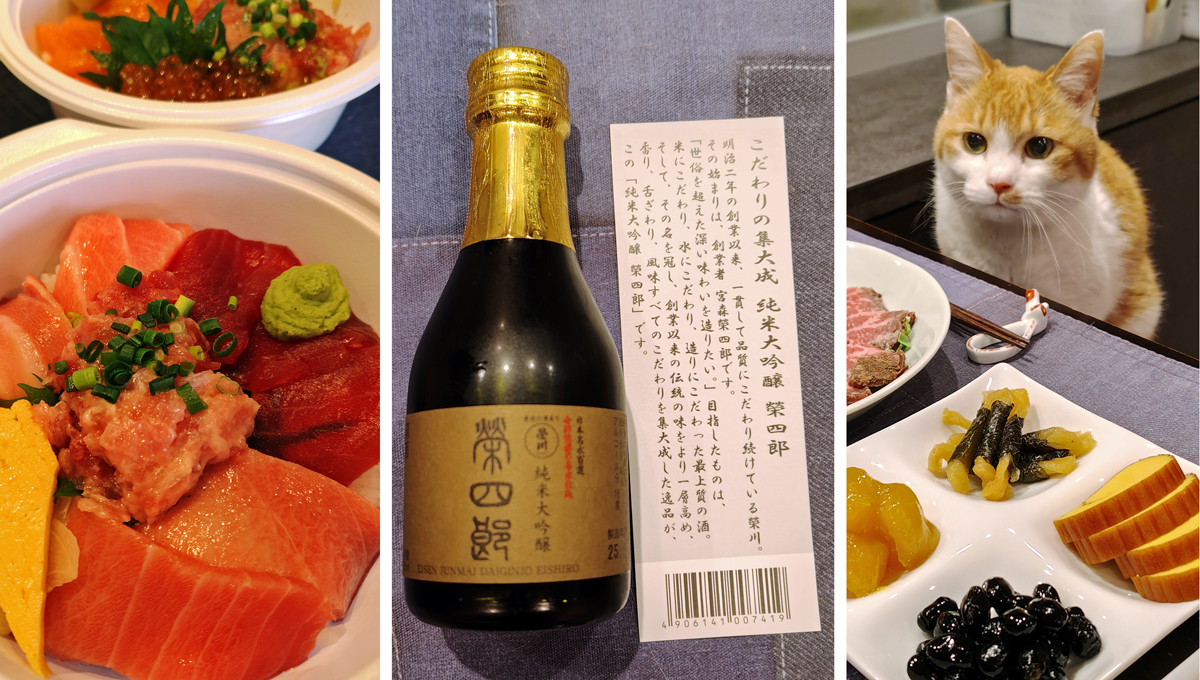 お昼は少しお高いお刺身丼と、夜はお酒におつまみいろいろ。 今年のお酒は金水晶ではなく「栄四郎」。昨年、法事で帰省した時に「コラッセふくしま」で買ったもの。髙いお酒なんだけど多くの人に味わってほしくて少量で販売しているとかなんとか。買ってみて良かった。うまい。この分量しかないから飲み過ぎない(^^;